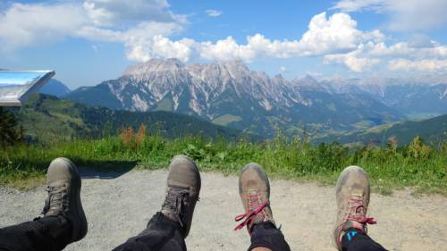 Übrigens, das Spielberghaus ist eine Reise und eine Empfehlung wert. Gemütliche Zimmer, leckeres Essen, zu Trinken gab es für jeden Magen etwas, eine Sauna mit großem Kino- Fenster, einen Hotpot, Waschservice für das Bike und die Klamotten. Eine Bike Garage welche sich sehen lassen kann.